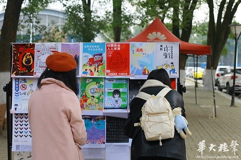 In front of the canteen of Nanhu, plenty of students were also appealed by the vibrant atmosphere. Except these mentioned games, there was another experience named “rescue from the fire”orienteering match. The players needed to learn the distribution, categories and number of the fire control equipment within 30 minutes. Then each group would send one person to join the quiz, and the participants who were able to give 6 correct answers in 90 seconds could obtain a badge. The questions about anti-swindle, fire control, personal safety and the common sense in our daily lives were all contained in the test. Furthermore, in the north of the court, there was a show which exhibited poems and paintings about anti-swindle as well as fire control.