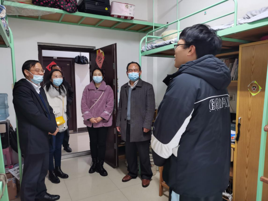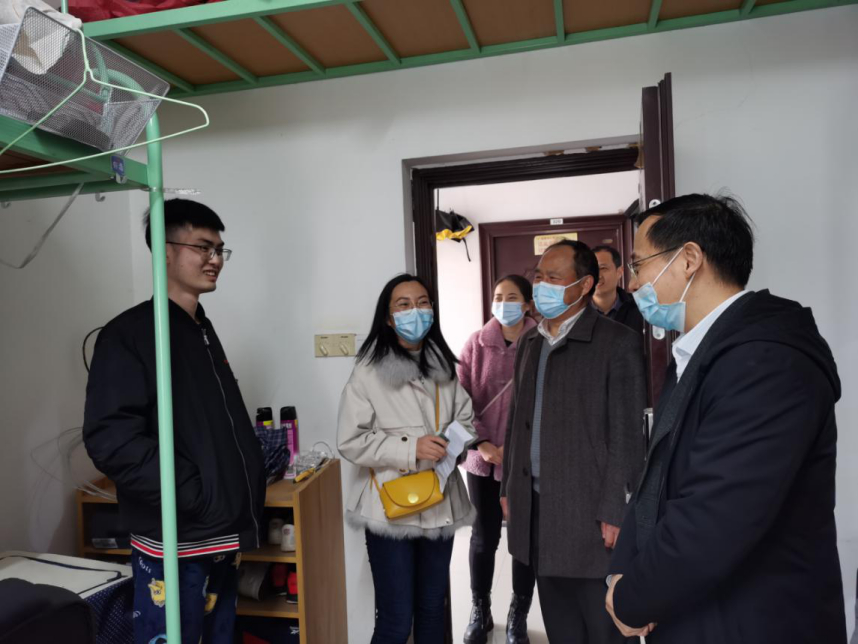On the afternoon of March 1st, 2021, Zha Daolin, deputy secretary of the Party Committee of CCNU, and Luo Jian, office clerk of CCNU,together with Nie Yaohua, secretary of the Party Committee of School of Economics and Business Administration, Chen Juan, the deputy secretary,Yang Yingjia and Ling Jin, counsellors for juniors from SEBA,visited the dormitories of undergraduates from SEBA to look in the students who had come back to CCNU.