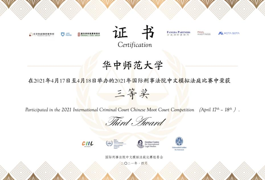 A total of 72 university teams registered for the ICC Chinese Moot Court Competition this year, hitting an all-time high. Our ICC Moot Team with its good legal literacy, excellent court debate level, complementary and mutually supportive team spirit and calm and collected psychological quality has won the impressive achievement of third prize nationwide in the ICC Chinese Competition for two consecutive years since its inception in 2019. Our ICC Moot Team will continue to maintain its enthusiasm for international criminal law, study hard and prepare actively for the competition, and strive to achieve even better results in future competitions!