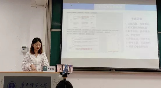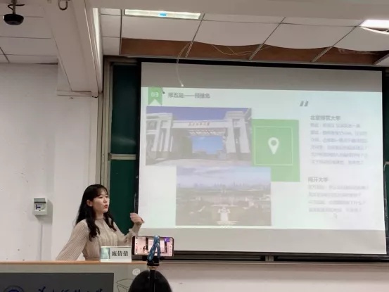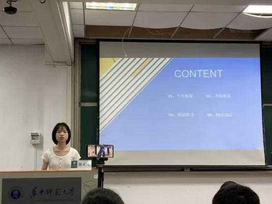 Next, Pang Qianqian, an excellent graduate from the English Department, introduced her experiences in preparing for postgraduate recommendation. She described a series of practical experiences from the summer camp to the pre-exemption. In addition, she also analyzed the policies about the postgraduate recommendation of China Foreign Affairs University, Sun Yat-sen University, Huazhong University of Science and Technology, Xiamen University, Beijing Normal University, Nankai University and other universities from various aspects, which deepened the students' cognition and understanding of postgraduate recommendation and drew applause from the audience.