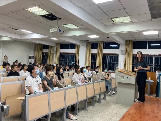 On the evening of May 28th, the second session of the 12th Excellent Graduates Sharing Meeting of the School of Foreign Languages was held in Room 3218. The aims of this activity were to share the experience of outstanding graduates and provide undergraduates with feasible suggestions and guidance on their career planning. Qiu Ling, secretary of the Youth League Committee of the School of Foreign Languages and counselor of the English Department of the Grade of 2019, attended the meeting.