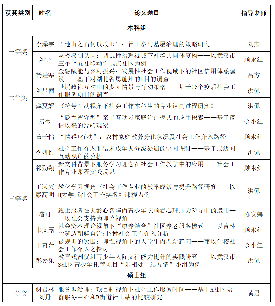 The List of Winners in The 13th China Social Work College Student Forum and the sixth Graduate Student Forum
