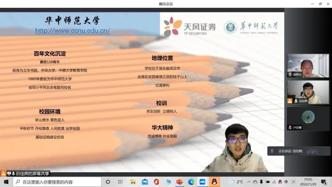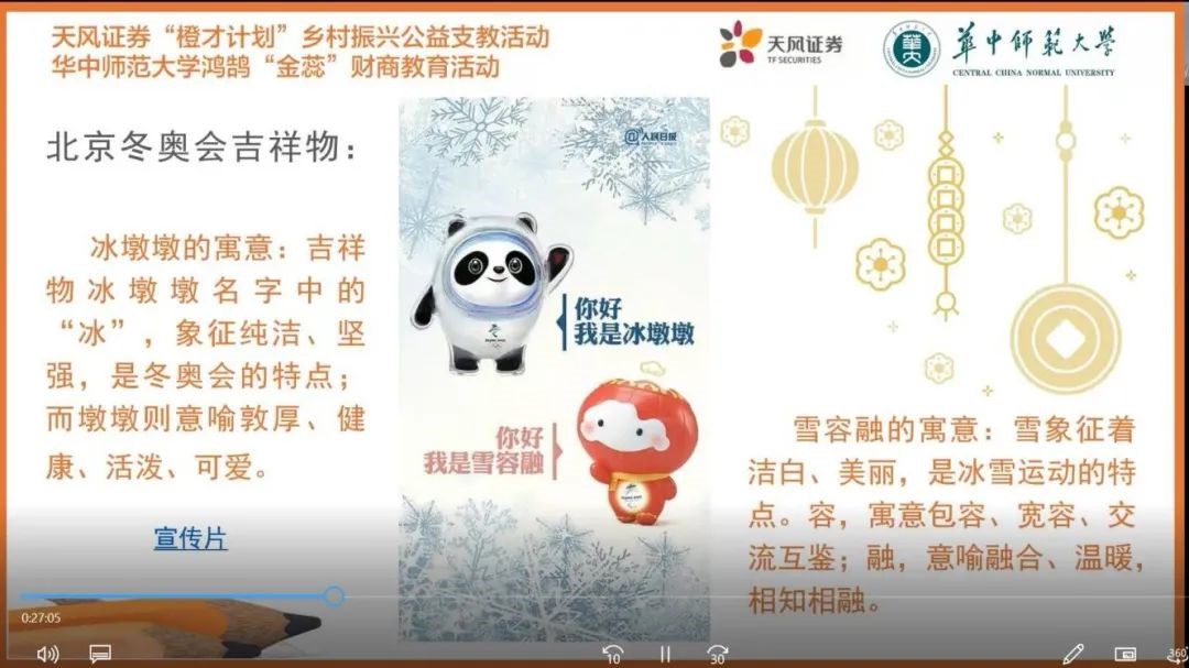 To support rural revitalization, encourage all college students to devote themselves to social practice actively and contribute their youth power, the College of Economics and Business Management of CCNU worked together with Tianfeng Securities co., Ltd and organized 42 volunteers to carry out financial quotient education activity called Help Students Become High Flyers with Financial IQ for 21 kids coming from Maoping Middle School in Zigui county as well as Yaochang burg, Fang county during the winter holiday.