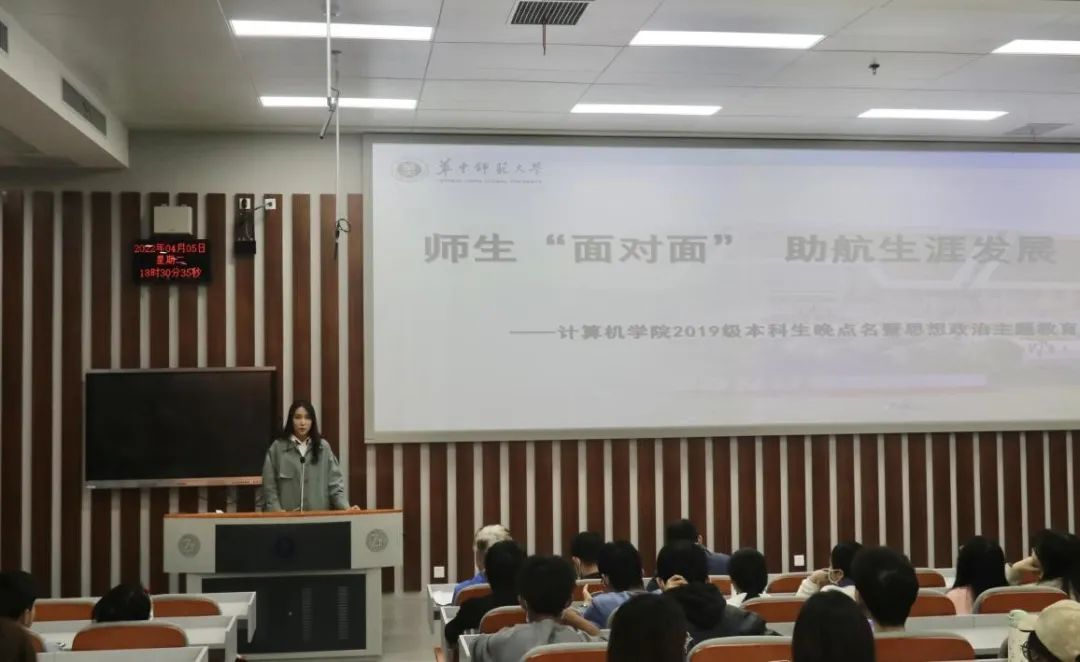 The Voice of CCNU In order to further implement the fundamental tasks of fostering virtue through education, adhere to regarding the students as center, ensure that the employment livelihood work landing, and the confusion and problems faced by the students at the third grade of college at the current stage of career development. On the evening of April 5, school of computer science was in South Lake Comprehensive Building N327 classroom carried out "teachers and students face-to-face" navigational career development theme education activities. Jiang Xingpeng, Dean of school of computer science, Zhuang Jiapeng, deputy secretary of the Party committee, and the college student learning and development center tutor Zheng Shizhen and the 2019 grade undergraduate students participated in the event. The event was hosted by the Secretary of the Party committee of school of computer science, the counsellor Zhang Lin.