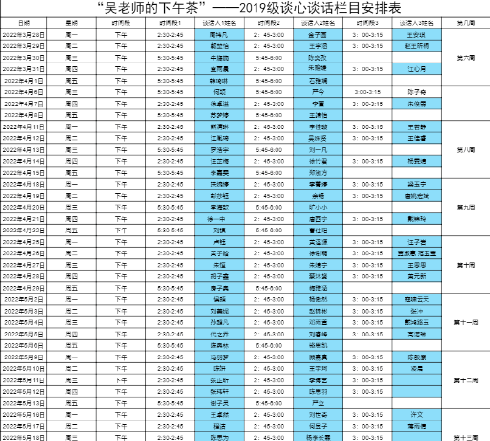 It is reported that since the launch of the "Afternoon of Teacher Wu" talk column four weeks ago, up to now, it has carried out one-on-one talks with 52 people, carried out two classified thematic discussions, and the theme of ideological and political education three times.