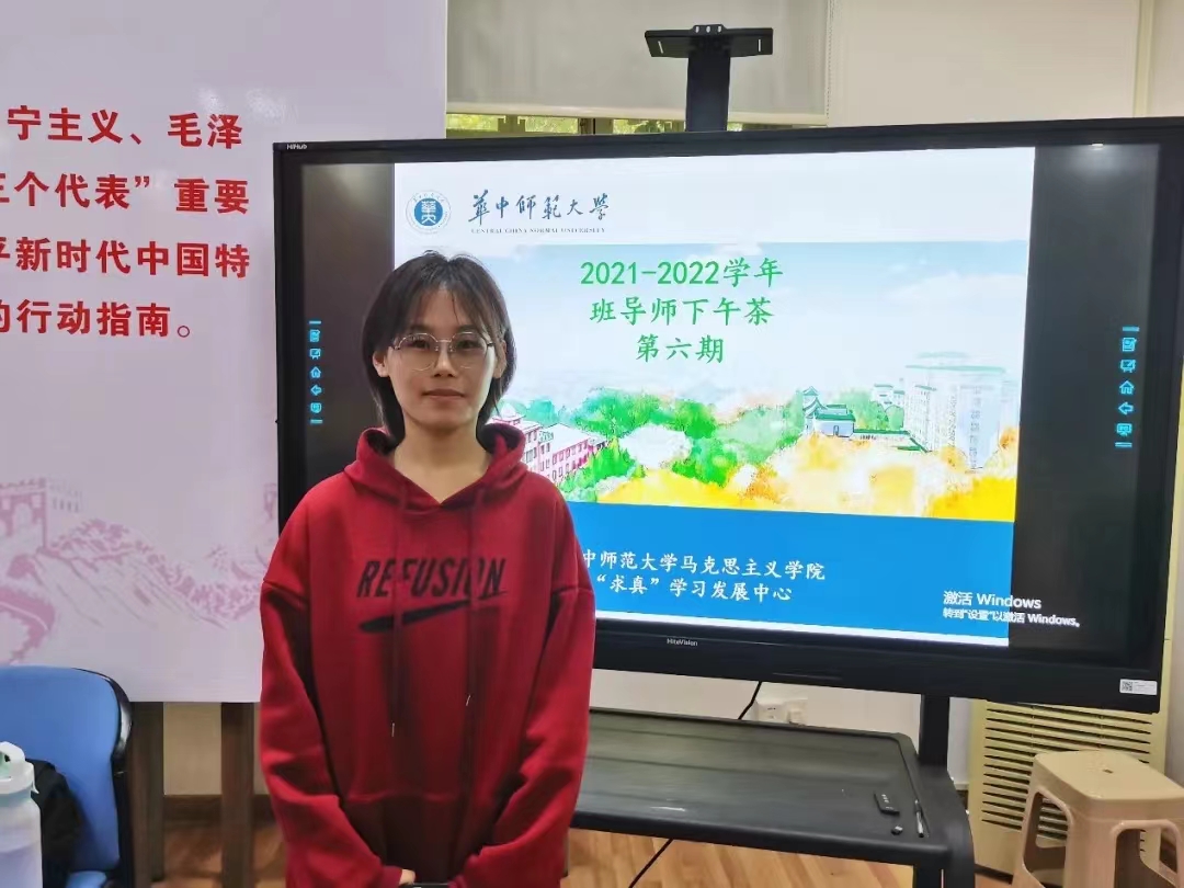 On the afternoon of April 30, the sixth tutor afternoon tea activity hosted by the "truth seeking" learning and development center of the School of Marxism was held in the 217 Party member activity room of Building 1. Cui Weifeng, teacher of the School of Marxism, was invited to attend. Li Mengting, the "truth seeking" learning and Development Center, presided over the activity, with a total of six students participating.