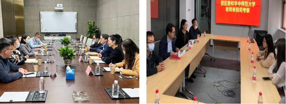 Fu Yizhao and his group visited "Wuhan Micro Dream Media Film and Television Creative Company", "Shidianban Cultural Media Co. Ltd.”, “Silk Road Vision Technology Co. Ltd.”, “Wuhan Yiwei Feixing Culture Development Co. Ltd.”, “Wuhan Xingyidong Network Technology Co. Ltd.” and other enterprises to understand in detail the production and operation situations and talent needs information of them. They also had a discussion and exchange with park leaders, business leaders and the comrades in charge of the Jiang'an District Youth League Committee.