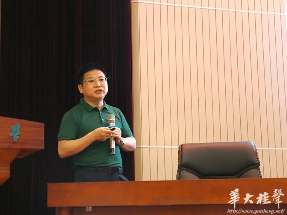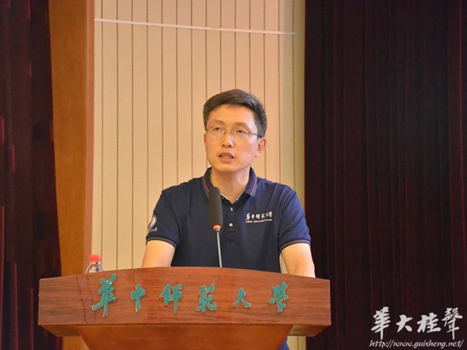 Guests were Zhou Lailai, the third-level investigator from the Comprehensive Division of the Internet Information Office of the Hubei Provincial Party Committee and alumnus of a class of 1998 from the School of History and Culture, and Li Huazhong, the secretary deputy of the personnel department and teachers’ work of Party Committee, and researcher. They gave reports in terms of two documents—improving the ability in using the internet to cope with online public opinion and a detailed explanation of teachers’ morality.