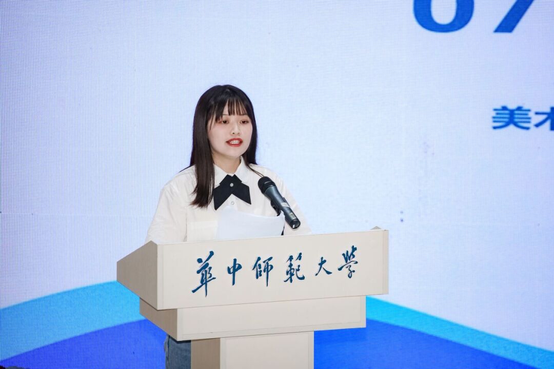 Mr. Shu Cong, director of the oil painting department, spoke as a representative of teachers. He talked about how after the refinement of fighting against the epidemic, the students of the School of Fine Arts have become stronger in their ideals, stronger in their will, and more powerful in their brushes. He hoped that the students would be good masters of the new era, create more artworks that reflect the voice of the times and uplift the spirit of the Chinese nation, and contribute their youthful power to carry forward the spirit of Chinese aesthetic education and promote the development of aesthetic education.