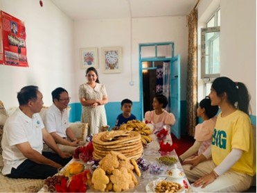 At Xiao Xie’s home, Xiao Xie translated for family with full-time counselor for etnnic minorities, making the conversation between the delegation and parents more smoothly. Xiao Xie took the initiative to share her academic achievement in freshman year and her parents smiled happily. Yang Jun encouraged her to share household chores actively and teach her family to learn mandarin to promote national unity.