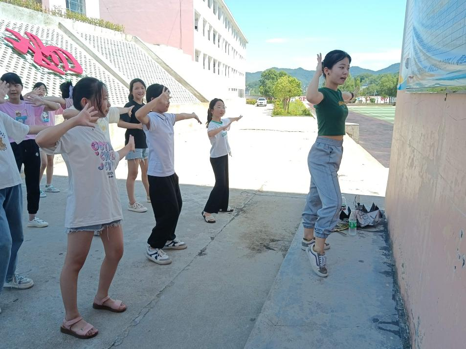 Zhong Wenhui and Yao Ziying arranged different dances for students in every class to prepare for the later art performance in advance. In today's dance teaching class, they led students to do warm-up exercises, using The Cowboy Is Busy as background music, to prevent students from hurting themselves during the follow-up teaching process. After the warm-up finished, a dance which choreographed to the theme music of the cartoon, GGbond, created active classroom atmosphere. The familiar song and cute dance movements inspired the enthusiasm of the students. After class, there were still many students practise new dance steps again and again.