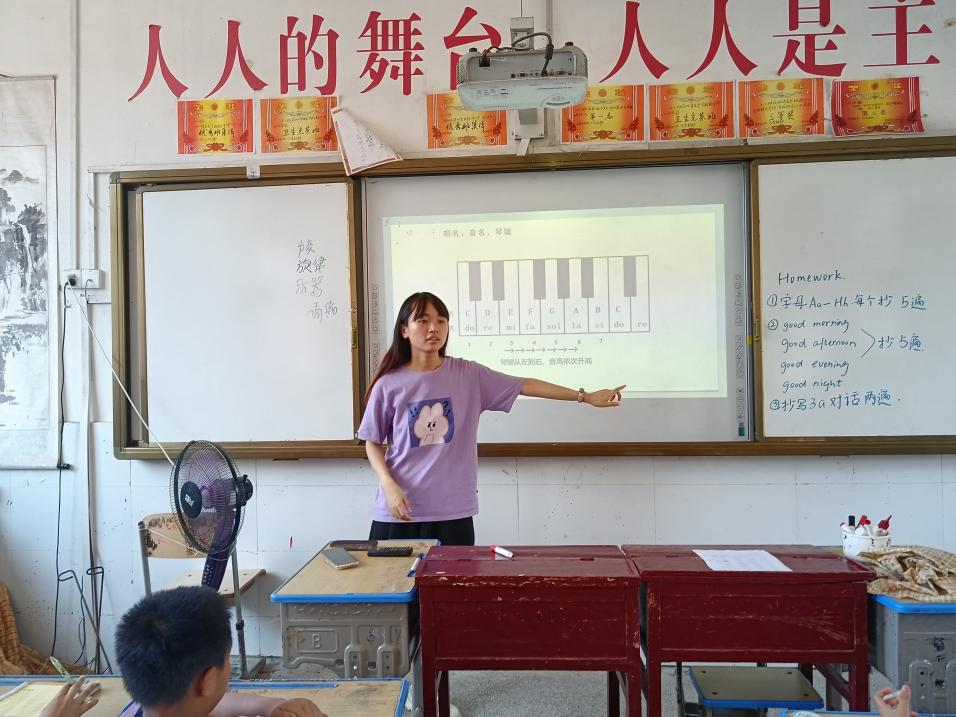 To further strengthen the educational function of aesthetic education and build an education system with all-round ability in areas such as morals, intelligence, physical fitness, work and aesthetics, the education assistance group with erudition and practice spirit of School of Chemistry carried forward Chinese art education spirit actively, made the educational status of aesthetics education stand out and integrated aesthetics education into overall process of practice during the “Volunteer Activities for the Country People” social practice activity in this summer. On July 10, the education assistance group offered dance classes, music classes and art classes for local children, expressed the connotation of beauty with two artistic forms which were artist's rendering and manifestation to help them cultivate ability to feel beauty and be creative.