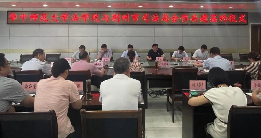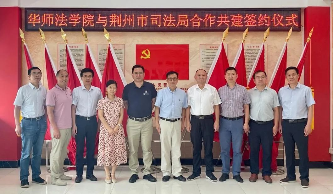 On the morning of July 15, the secretary of the Party Committee, Yang Chen, the dean, Ding Wen, the deputy secretary of the Party Committee, Wan Zong, the vice-president, Xiao Denghui of Law School, the director of Juris Master Education Center, Wang Qingjun and some other attendees left for Jingzhou Judicial Bureau to develop cooperation and co-construction. The secretary of the Party Committee of Jingzhou Judicial Bureau, Wang Tongyi, the director general, Wen Yulian, deputy director general, Fu Xiaobing and other leaders were present at the signing ceremony.