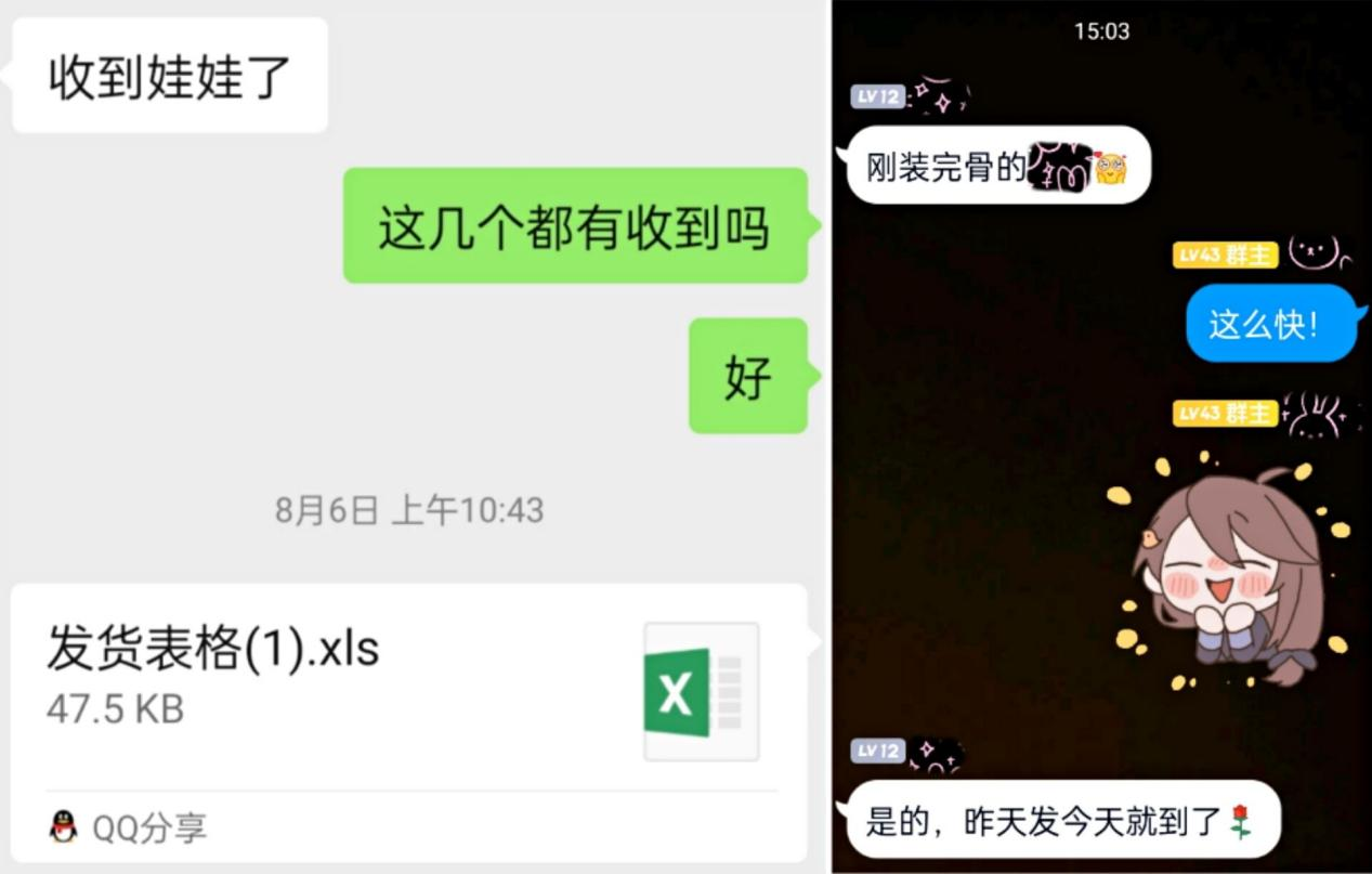 还有一件令我开心的事是,我负责贩售的棉花娃娃终于开始发货了。经历了三次换厂的波折才顺利做出满意的样品并正式完成贩售,这段经历赋予了我强烈的责任感——他不只是一个普通的棉花娃娃,在我心里他是如同我的“孩子”一般的存在,从打样到出货的每一个环节我都要亲历亲为,就像亲自培养一个孩子长大。看到他们被送到他们的新“妈咪”手中,给她们带去快乐,我也会感到非常高兴。