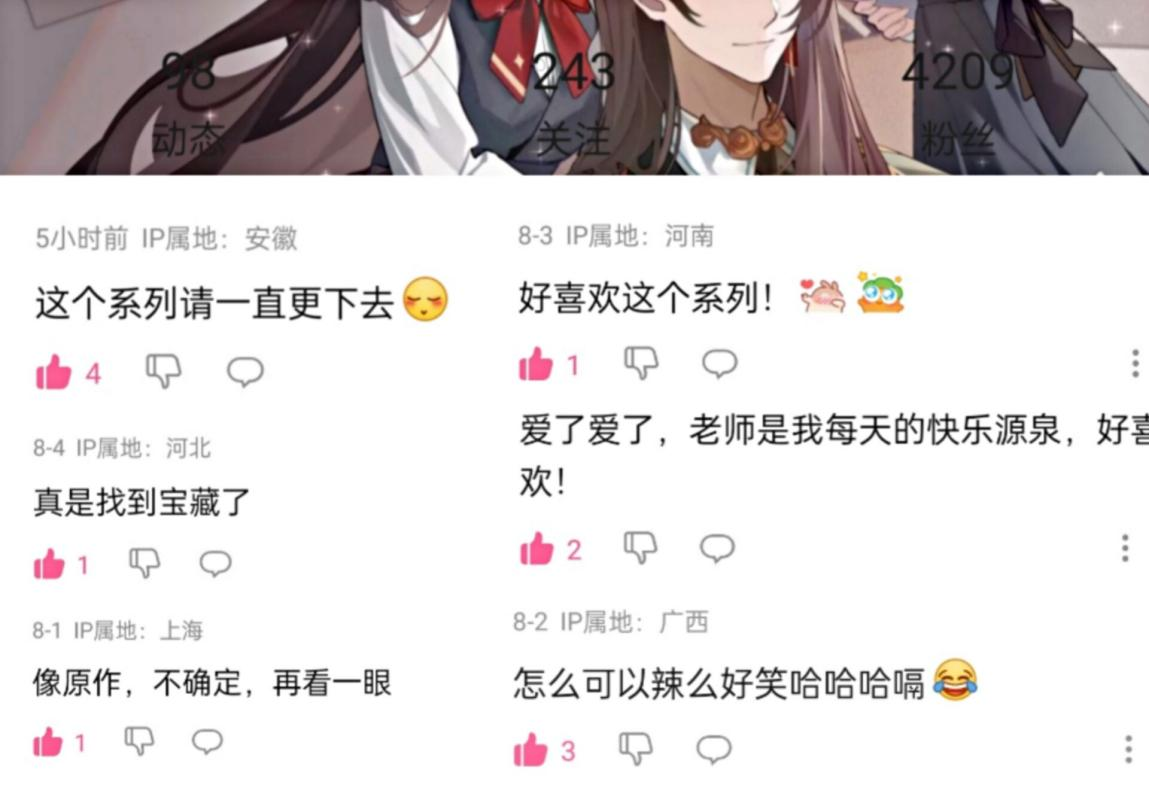 虽然活动空间有限,但可以做的事情也有不少。我继续做视频剪辑,把我喜欢的事物以欢快的方式分享给观众,获得了一些人的喜爱和支持,也吸引了一些人成为我的同好,让他们在生活的间隙里放松下来,获得直接的快乐。此外,我还进行了一些同人创作,并将它们发布到公共平台上,收到的每一个kudos和每一条评论都给了我极大的鼓舞。无论是视频剪辑还是写作,在创作的过程中免不了要遇上一些困难,但如果有人能够看到你的作品,从中获得正向的情绪价值,你就会觉得这些挫折根本算不了什么。