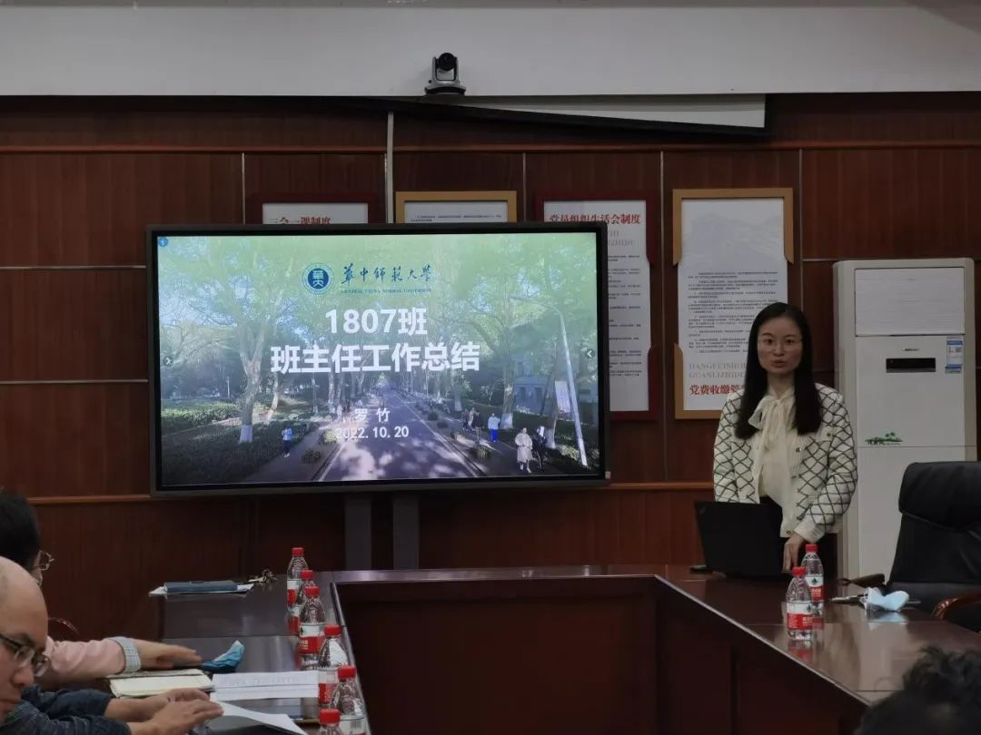Voice of CCNU On the noon of October 21th, the undergraduate head teachers work report meeting of class 2018 as well as head teachers special training conference of class 2022 of College of Chemistry was held at Conference Room 502 in Chemistry Building. Qiu Baoguo, the secretary of the Party Committee of College of Chemistry, Xu Fen, the deputy secretary of the Party Committee, Yuan Hong, the deputy dean of College of Chemistry, Ma Ying, undergraduate counselor of Class 2018 and 2022, Yao Qini, part-time undergraduate counselor of Class 2018 and 2022, and head teachers of Class 2018 and 2022 attended the meeting.
