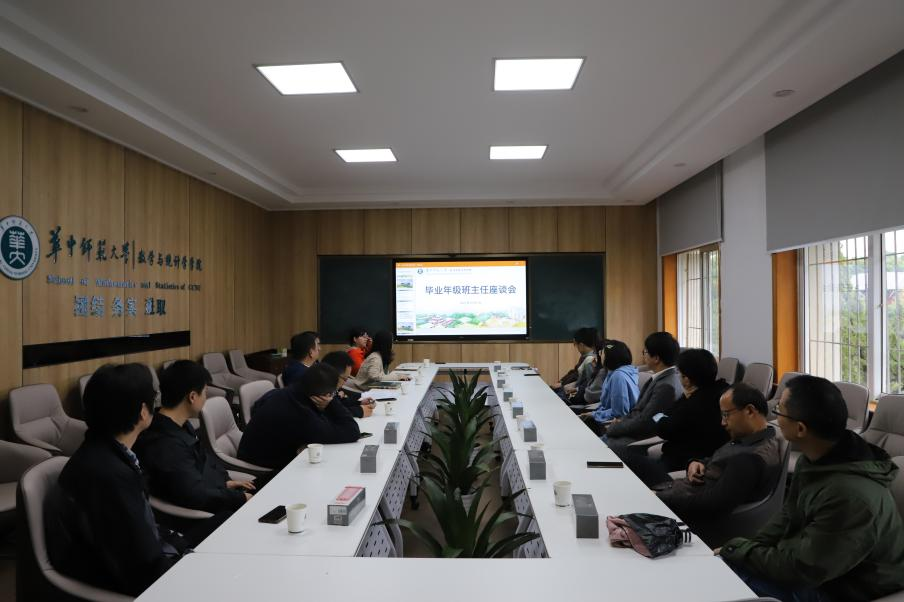 The Voice of CCNU At noon on October 7, 2022, the work meeting of the head teacher of the graduating class of the School of Mathematics and Statistics was successfully held in Room 6323 of Building 6. Liu Chengzhu, Zheng Gaofeng, and Tian Jun from the School of Statistics and Statistics, Dong Yueping, Xiong Ming, Zhang Zhengjie, Huang Chao, Chang Hao, Wang Yan, Zhao Yue, Tang Lan, Wang Hua, Li Bo, and Chen Gang, headmasters of 2019, Ding Wenting, teaching secretary, and Li Hui and Xu Jingyi, counselors of 19, attended the meeting. The meeting was chaired by Tian Jun.