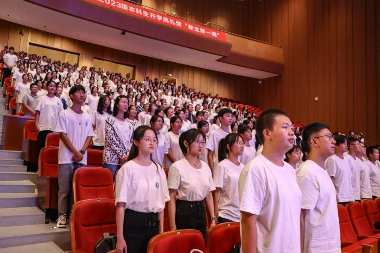 At the beginning of the meeting, all the participants stood up and sang the national anthem. After the ceremony, the opening ceremony of Class 2023 freshmen officially began.