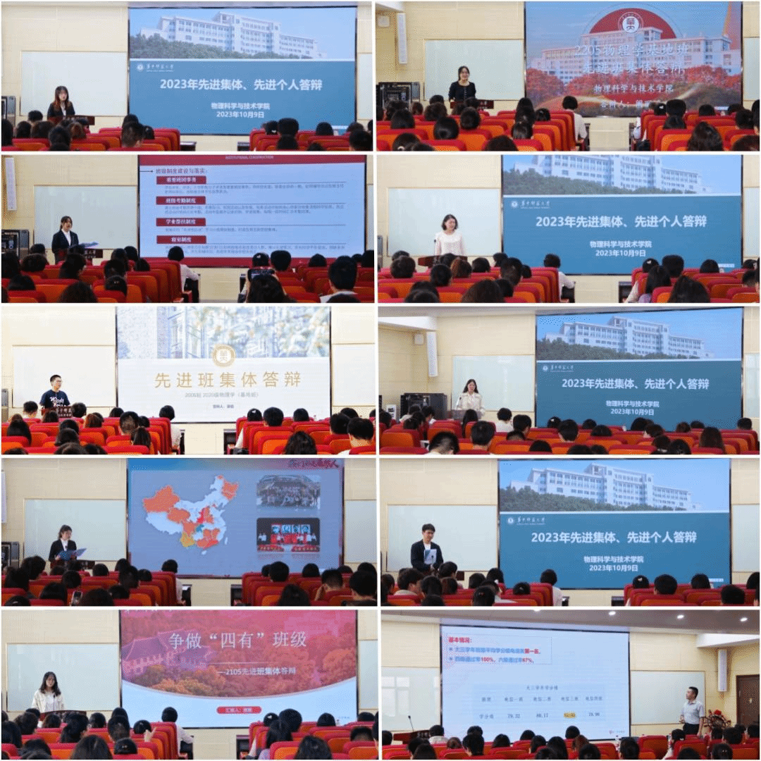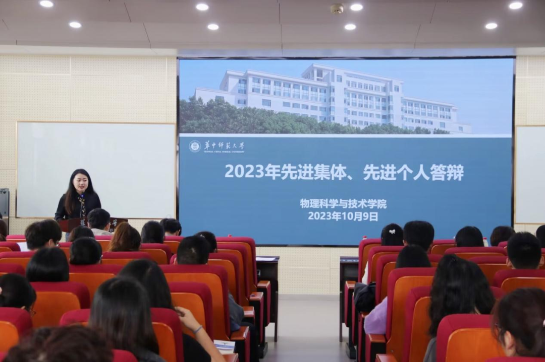 In order to strengthen the construction of class and league while enhancing the exemplary role of the examples, on the afternoon of October 9, the advanced collectives and advanced individuals defense meeting for the undergraduates in the 2022-2023 academic year of the School of Physical Science and Technology was held in conference Room 9557, building 9. Ms. Ma Ying, vice secretary of the party committee, representatives of headteachers of all grades and all undergraduate counselors attended the meeting. And more than 80 representatives from each class watched the meeting on site which was presided over by the counselor Liu Jinrui from batch 2022.