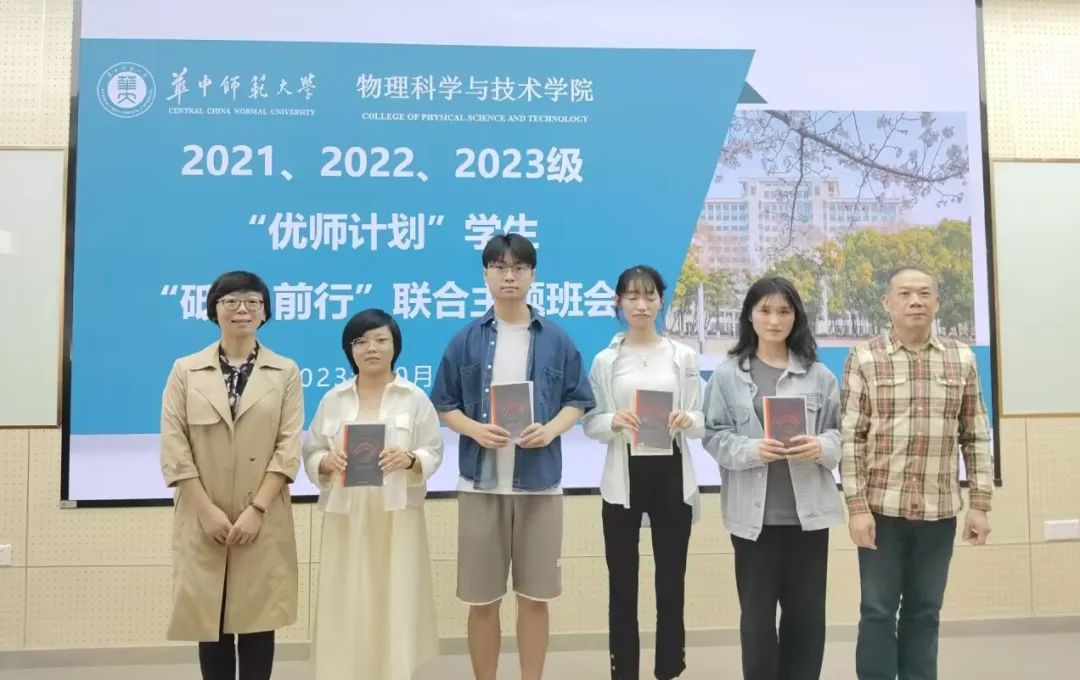 The Voice of CCNU On the afternoon of October 29th, the joint theme class meeting for students of the Targeted Teacher Training Plan of grade 2021, 2022, 2023 of College of Physical Science and Technology was held in the Lecture Hall 9557. The theme of this class meeting is “Striving Forward”, aiming to solve students’ difficulties in academy and life through experience sharing and teacher-student communication, and to encourage them to actively move forward in their future. Wu Shaoping, Vice President and teacher in charge of 2022 “Targeted Teacher Training Plan” class, Ma Ying, Deputy Secretary of the Party Committee of the college, counselors Jiang Chunyong, Liu Jinrui, Yan Ruixue, and all students under the Targeted Teacher Training Plan participated in the meeting. The meeting was presided over by Liu Jinrui, the counselor of grade 2022.