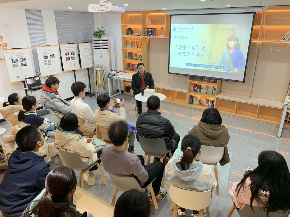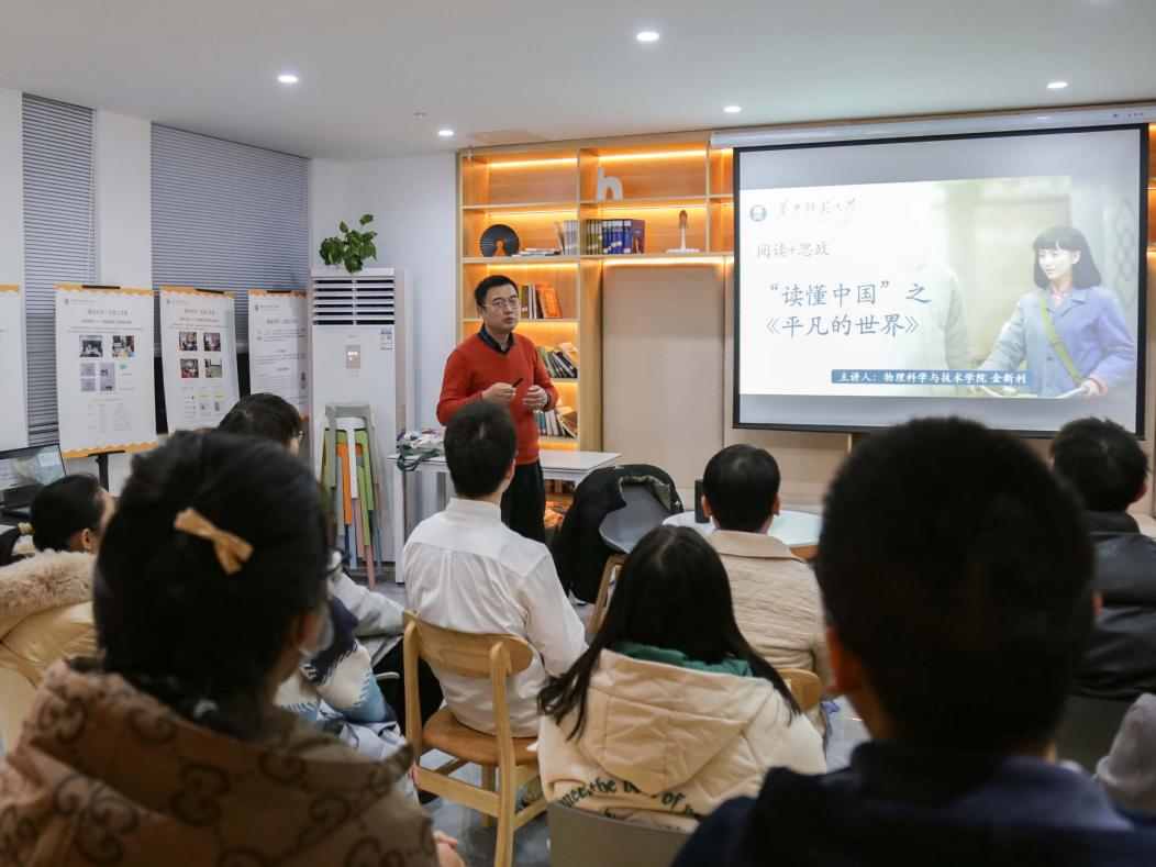 The Voice of CCNU. On the evening of December 1st, the "Love for China, Aim for High" Reading books and understandingChina activity was held in the "Xinyue Space" of the "one-stop" community comprehensive service center of the 18th student dormitory in the East District. Jin Xinli, Secretary of the Party Committee of the College of Physical Science and Technology, led the reading of“The Ordinary World”. Wu Jiancheng, Deputy Director of the Office of Student Affairs of the Party Committee, Alishat, a teacher of the Office of Student Affairs of the Party Committee, Wang Di, the counselor of the College of Physical Science and Technology, and more than 20 students from various colleges participated in the activity, hosted by Kadiya Niyazi, Deputy Director of the "Gezhi" learning Development Center of the College of Physical Science and Technology. This activity was one of the patriotic education brand activities of Central China Normal University sponsored by the Office of Student Affairs of the Party Committee and undertaken by the College of Physical Science and Technology.