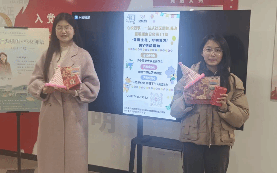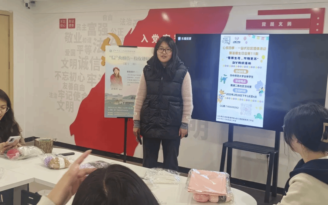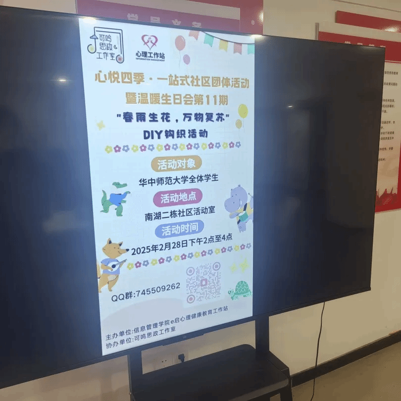 On the afternoon of February 28th, the "Spring Rain Blossoms, Vitality Revives" DIY crochet activity and February birthday celebration for Nanhu Building 2 community, organized by the School of Information Management’s e-Start Mental Health Education Center and co-hosted by Keming Ideological and Political Studio, was successfully held at the community activity center. Combining hands-on crafting with collective birthday festivities, the event injected vitality into the new semester and further strengthened community cohesion.