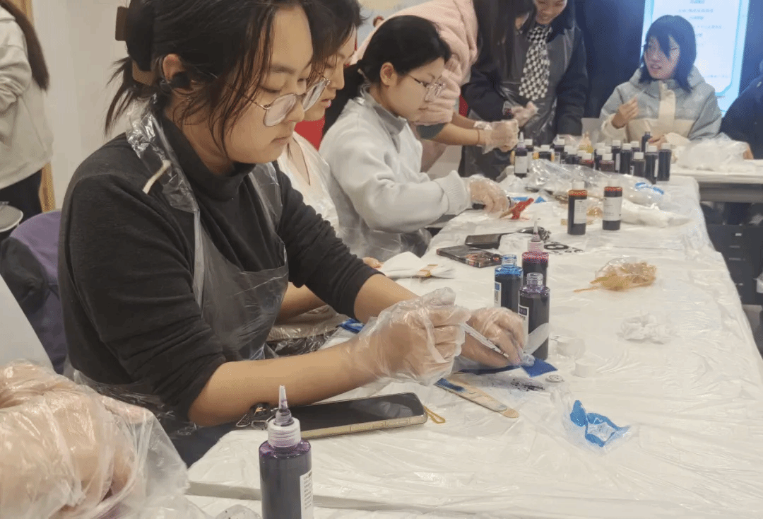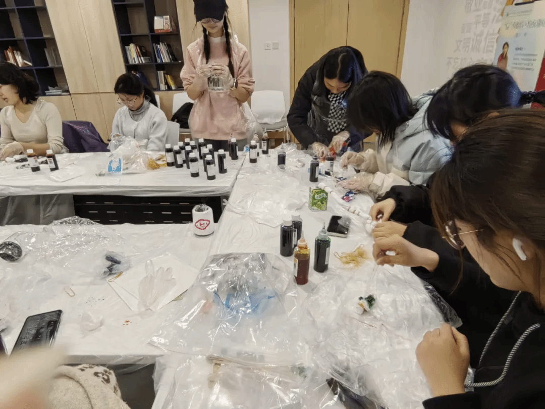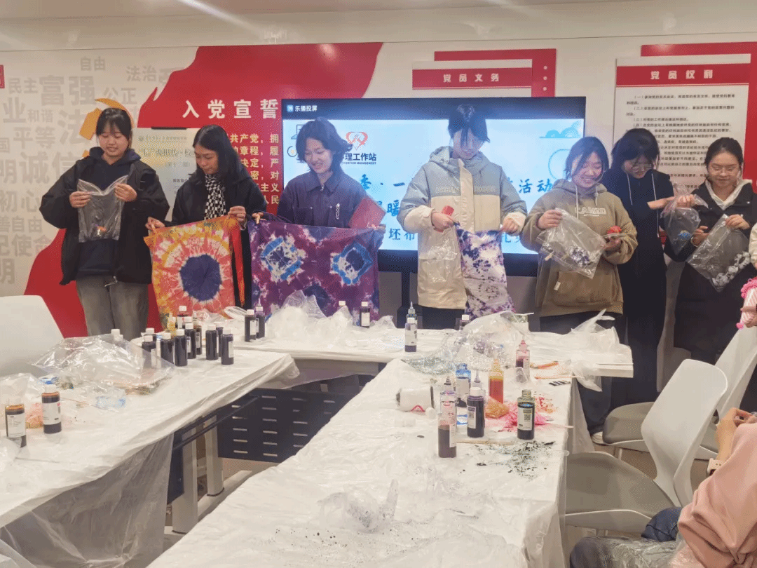 Meanwhile, students expressed that they felt both physically and mentally relaxed, while also gaining a deeper understanding of tie-dyeing as an intangible cultural heritage craft. The DIY tie-dye activity is part of the "Warmth Delighted the Four Seasons" series of courses, designed to utilize the creation of intangible cultural heritage crafts to guide participants in perceiving, capturing, and creating beauty, thereby achieving psychological healing.