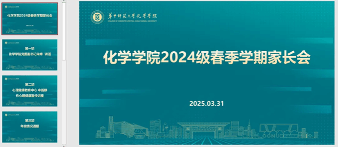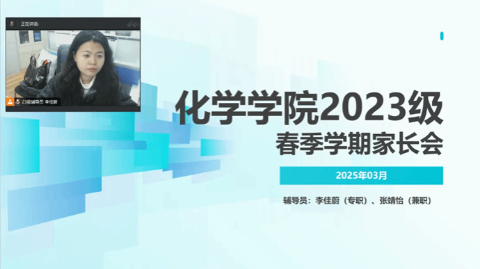 The Voice of CCNU In order to implement the fundamental task of moral education, further strengthen the home-school collaboration to educate people, further establish and improve the home-school communication mechanism, focus on accurate thinking and politics, and better serve the growth of students, a few days ago, the College of Chemistry undergraduate grades respectively held the spring semester online parents meeting. The parent-teacher meeting to "home school coordination, a total of long" as the theme, Zhu Feng, Deputy Secretary of the College Party Committee, the school college students mental health education center full-time teacher, psychological consultant Mou Yunjing attended the whole process and made a special guidance report, the meeting was presided over by the grade counselors.