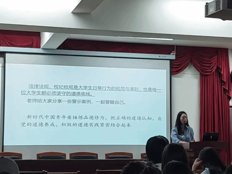 Additionally, focusing on the recent incidents of electric vehicle battery fires on campuses of colleges and universities in Hubei Province, Ms. Li guided students to develop rational thinking. She linked these cases to practical issues such as campus electric vehicle management and dormitory fire safety, calling on students to pay attention to daily safety risks and fulfill their public responsibilities. She emphasized that maintaining campus safety requires collective awareness and proactive measures, urging everyone to be vigilant and contribute to a safe living and learning environment.