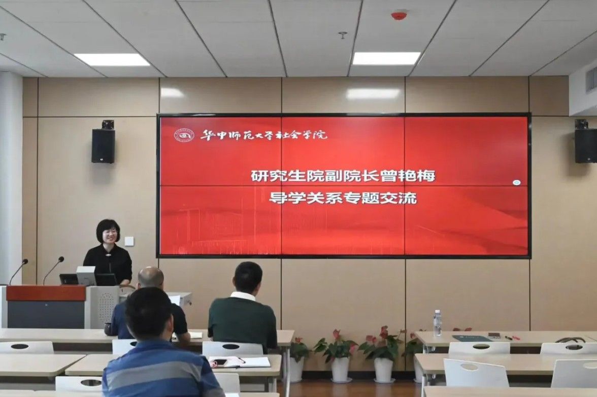 The Voice of CCNU On the afternoon of May 14th, the exchange meeting on the construction of the mentorship relationship of the School of Sociology was held in Room 912 of the North Building of the Liberal Arts Research Building. Zeng Yanmei, the vice dean of the Graduate School, Tao Li, the deputy secretary of the Youth League Committee of the university, and Wang Weixin, a teacher from the Center for Mental Health Education of College Students, were invited to give tutorial reports. All the teachers of the college attended the meeting, which was presided over by Feng Shengbing, the Party Secretary of the School of Sociology.