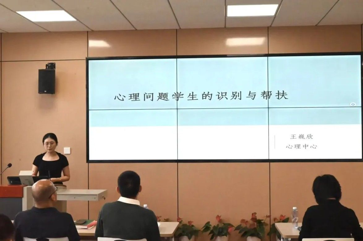 Wang Weixin, a teacher from the College Students' Mental Health Education Center, gave an introduction on "Identification and Assistance of Psychological Problems". She emphasized the importance and methods of identifying psychological issues, and particularly recommended mental health resources both on and off campus, calling on teachers to show more care and respect to students and jointly safeguard the mental health defense line on campus.