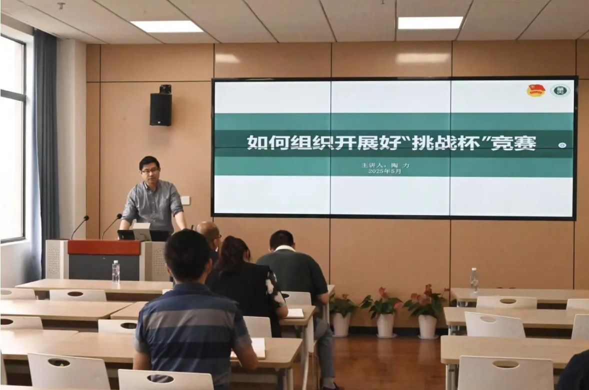 Tao Li, the deputy secretary of the school's Youth League Committee, took the "Challenge Cup" competition as a starting point and systematically introduced the competition rules and the school's award-winning situation in recent years. He elaborated on the crucial role of discipline competitions in talent cultivation by referring to the national special prize case and focusing on three dimensions: supporting the construction of "Double First-Class" universities, facilitating discipline evaluation, and promoting the development of teachers and students. And the requirements for the competition preparation work were mobilized and interpreted, providing valuable suggestions for the college to organize and guide students to participate in the competition.