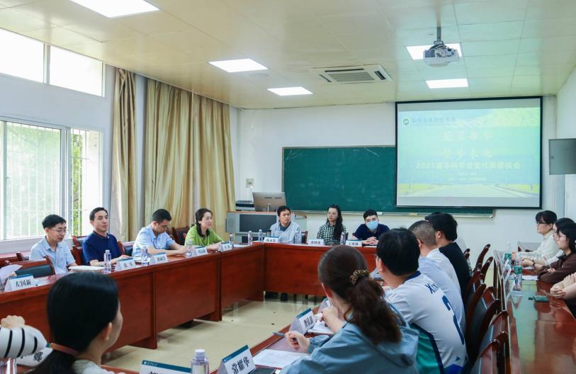 At the beginning of the session, Wang Aolin reported on the overall situation of the 2021 graduates and summarized the achievements and shortcomings of 2021 graduates in professional courses learning and job hunting. Then, graduates representatives from different majors shared the problems and put forward suggestions from the aspects of professional curriculum, normal students' skills training, language learning, employment guidance, postgraduate entrance examination guidance, psychological assistance and so on.