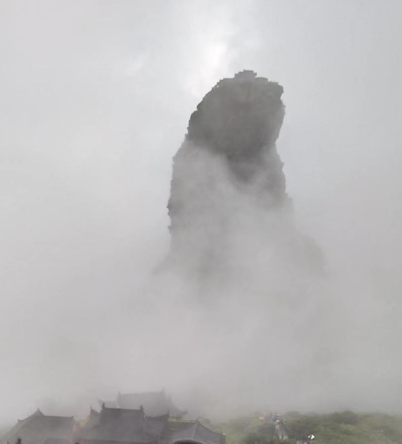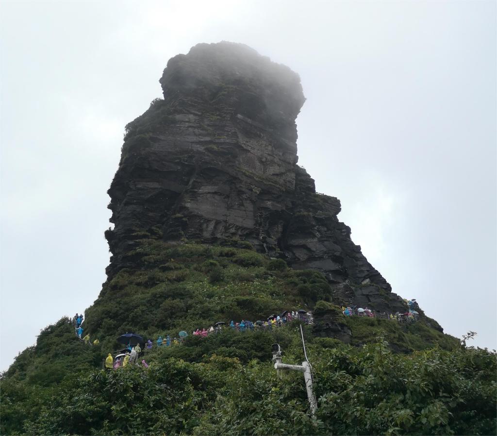 蘑菇石是梵净山最具代表性的岩石景点,也是梵净山的精神所在。它是由沙质板岩和石英砂岩组成的高达十米的方形石柱。当你看到它时,你可能会感到惊讶,因为正方形的巨石错位覆盖在另一长方形巨石上,似乎是不稳定的。其实,它已经长期遭受风蚀,在这里矗立了亿万年。