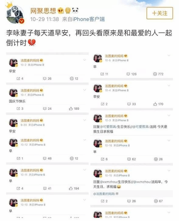 According to AI, since April 14, 2017, Li Yong went to the United States to treat cancer, his wife Ha wen has sent him 551 “good morning”s , which lasts almost every day (the above is only a small part of it), and it is not until today that we finally understand the meaning of these "mornings", which really make us weep.