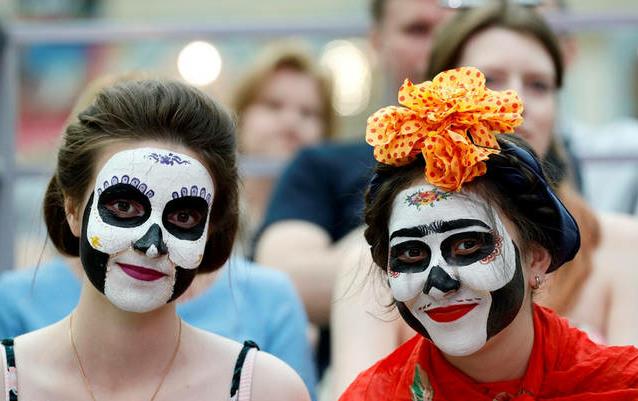 墨西哥 亡灵节 每年11月2日为墨西哥的“扫墓节”,家家为死去的人扫墓。去时,准备特别的“亡人面包”、骷髅形糖块和已故亲人爱吃的食物及烟酒,作为祭祀供品。人们穿着奇装异服,戴上祖辈相传的假面具,对着先人的亡灵又唱又跳。相传这源自印第安人的风俗。举行仪式后,全家人在墓前铺上布,席地而坐,点上蜡烛,边吃喝,边歌舞,作为守灵,通宵达旦。有的人装扮成骷髅和食尸鬼参加的壮观游行。还有一种著名的传统,就是节日狂欢者们把一个活人装进棺材,举行一个模拟的葬礼。但各地区扫墓的时间不同,有的地区在白天,有的在晚上。