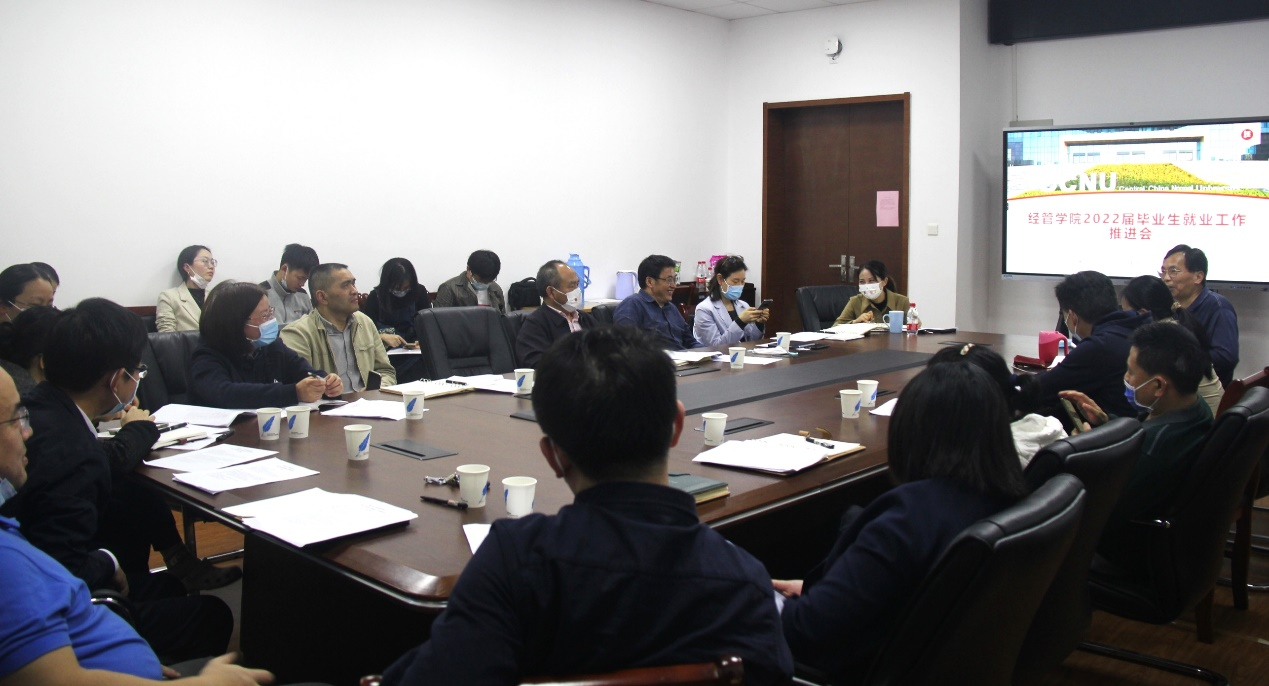 (通讯员:刘易欣 郭雪)2022年4月20日下午14:30,经管学院于南湖综合楼10060召开2022届毕业生就业工作推进会,会议主要围绕2022届本科生、研究生就业情况和推进毕业生就业工作情况进行汇报与讨论。华中师范大学招生与就业工作处副处长覃事太,经济与工商管理学院党委书记聂耀华、院长涂正革、正处职组织员闫丽莉、副院长周维第、各系系主任、各系支部书记、研究生导师代表以及2018级本科生辅导员、班主任出席会议。会议由学院党委副书记陈娟主持。