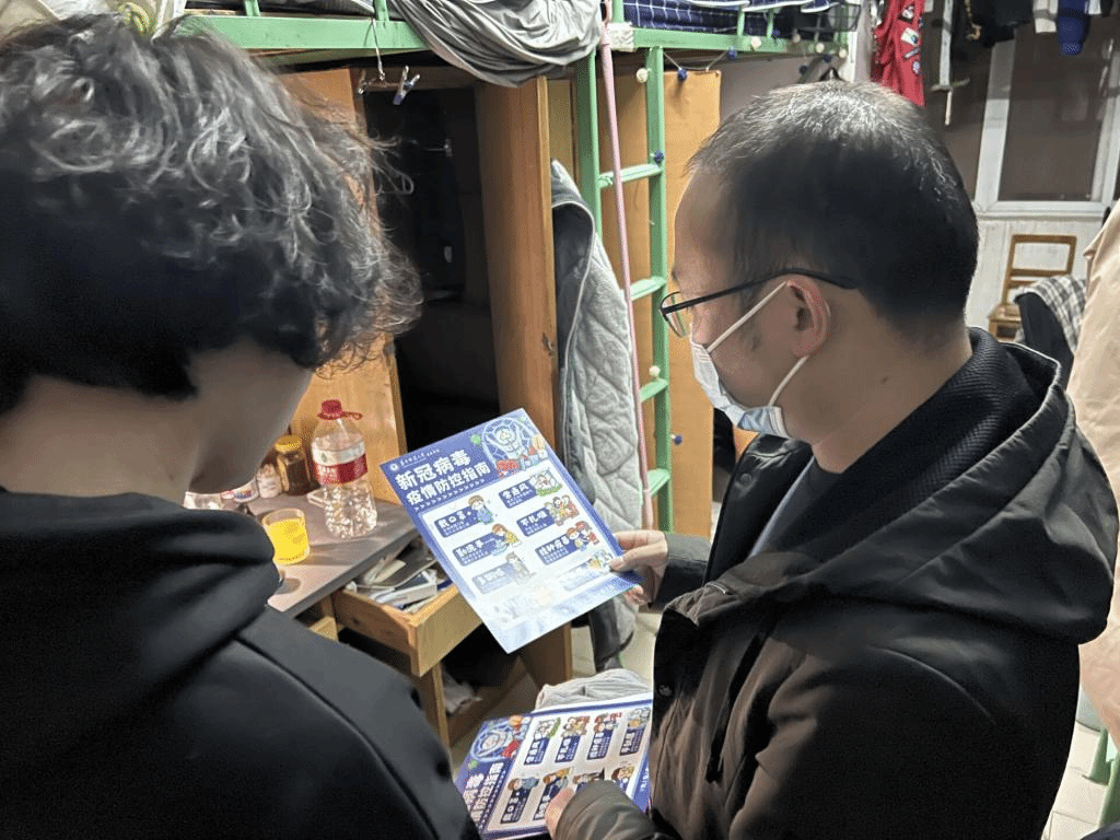 4月17日晚,学院党委副书记陈晓刚和各年级辅导深入学生宿舍,了解学生在校情况,开展疫情防控宣传。为了加强同学们疫情防控意识,学院专门制作了疫情防控提示宣传画。各年级辅导员结合查寝,了解同学们学习生活情况,开展疫情防控知识宣传,并为每个寝室张贴了疫情防控提示宣传画。