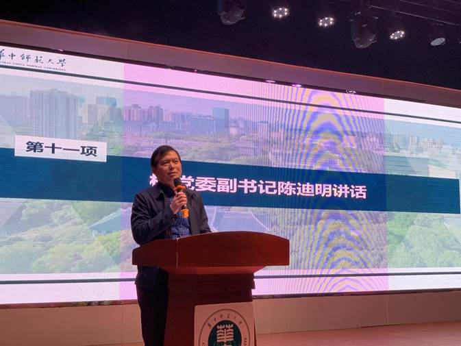 (通讯员 刘重江)11月26日晚18:30,“筑梦新时代·奋斗正青春”华中师范大学第六届生涯规划书设计大赛决赛暨生涯宣传周闭幕式于大学生活动中心五楼展播厅举行。本次活动由党委学生工作部主办,城市与环境科学学院、生命科学学院承办。校党委副书记、党委学生工作部部长陈迪明党委学生工作部副部长杨军,校团委书记麻旎,城市与环境科学学院院长敖荣军,党委学生工作部副处长郎东鹏,经济与工商管理学院党委副书记陈娟,城市与环境科学学院党委副书记饶艳萍,生命科学学院党委副书记刘阳,外国语学院党委副书记杨灵珍出席本次活动。