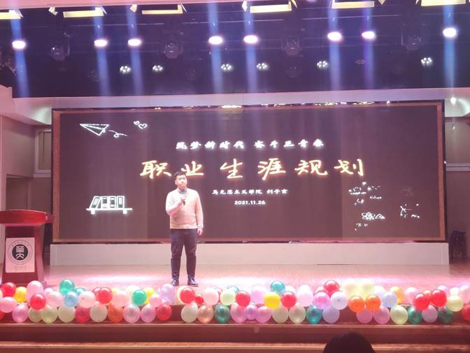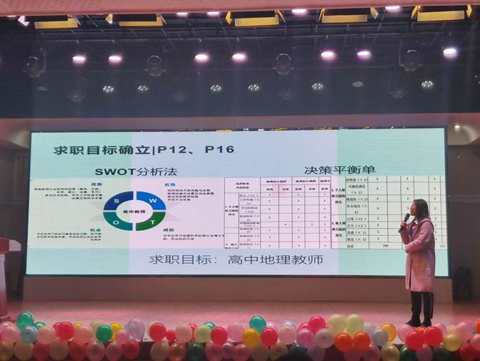 决赛最后,来自马克思主义学院的刘子玄深刻分析了自己的优势与劣势、机会与威胁,将自己的生涯发展定位为高校辅导员,制定了一份完整清晰的计划表。