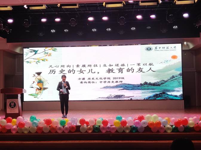历史文化学院的方潇以“历史的女儿,教育的友人”为主题,明确自我定位,找准发展目标,积极实践,为成为一名合格的历史教师打下基础。