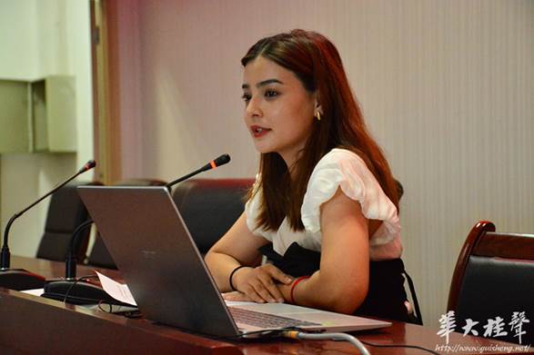 全体起立,奏唱国歌后,民族事务办老师依次进行工作介绍。民族办主任美合日姑丽从“思想引领工程”、“能力提升工程”及“成长关爱工程”三个方面介绍我校民族学生教育管理服务情况。我校少数民族学生人数众多,涵盖地区广,学校对民族学生的发展非常重视,实施爱国主义教育、感恩教育,培养其中华民族共同体意识和家国情怀;同时强化党史学习教育,增强新时代下大学生的使命担当;推出个性化教育帮扶,打造多样性教育品牌,全方位提高学生素质。美合日姑丽以“丝路逐梦”支教团赴新疆各地支教为例,表明我校少数民族学生有平台、有渠道增强人生阅历,获得全面发展。