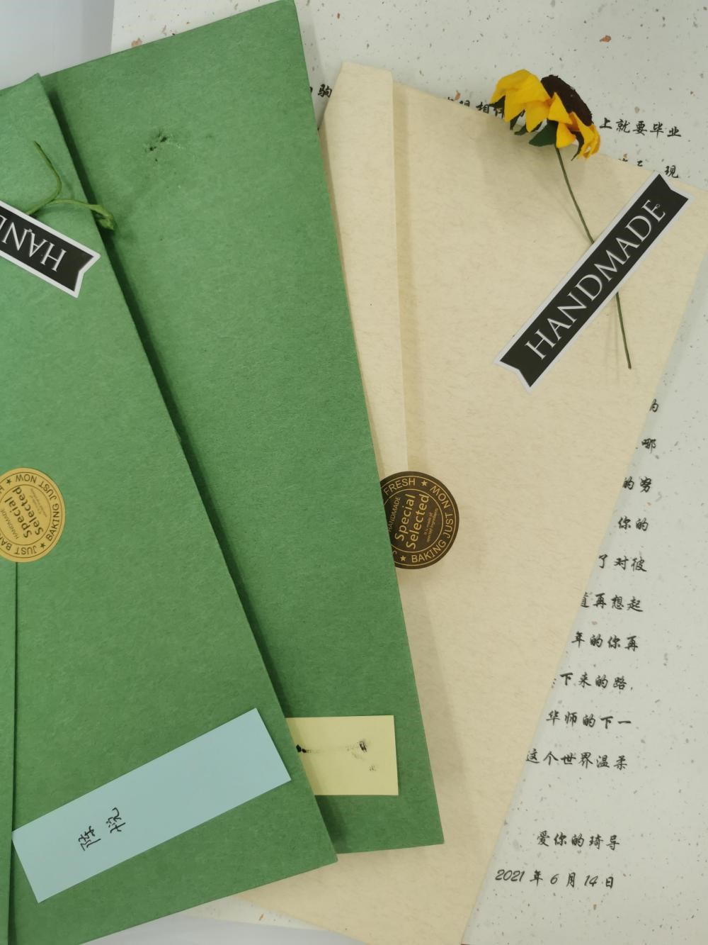 在物理学院2021届本科生们刚刚入学的时候,辅导员刘琦就曾组织大家书写大学四年的目标和规划,即给四年后的自己写一封信。这些信都由刘琦老师悉心保管着,四年后在毕业生领取双证时一并返还。这些信件不仅保存完好,刘琦老师还附上了一封临别之际写给同学们的回信,她希望大家认真对待自己今后的人生,“华师的下一站,是未来”催人奋进。这些信被装进了精美的信封中,另有一束小小的向日葵装饰物别在信封上面,寓意同学们怀着自信和阳光,勇敢奔赴今后的人生道路。毕业生们纷纷表示,感受到了文字和时间的力量。