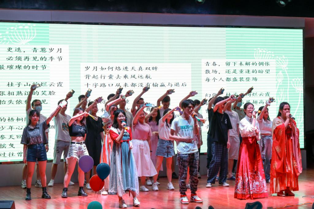 物理学院2021届毕业晚会于6与7日晚举行,以“梦系桂子,寄愿明朝”为主题,分为“恣意青春岁月”和“你我手绘宏图”两个板块,涵盖舞蹈、歌曲、器乐等多种艺术形式。晚会现场气氛层层推进,高潮迭起,欧阳泳婷、孟毓涵、周长春和吴静涵的改编歌曲物院版《达拉崩吧》更是引得全场欢呼合唱,刘琦辅导员与周昊涵、潘芸菲同学一起创作的歌曲《岁月如何》作为隐藏节目更是带给观众无数惊喜。