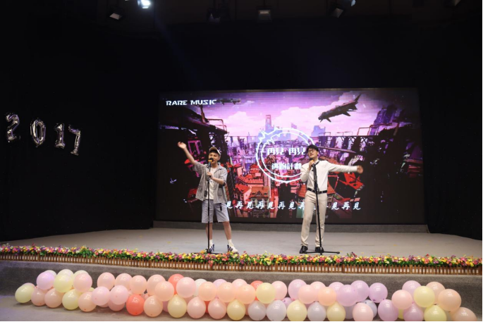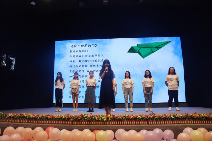 随后就是《蓝莲花》等歌曲串烧和数媒“BLACKPINK”宝藏女孩们的舞台首秀,这个少女团体带来的舞蹈《Lovesick Girls》把现场带到高潮。黄勃代表教师带来歌曲《七律•长征》,为同学们送上亲切祝福。1702班全体同学合唱《倔强》,他们以此祝愿追逐梦想路上的每个人都能够勇敢前行。钟文锐老师和谭政老师为晚会献唱《海阔天空》,并借这首歌祝毕业生的人生和事业海阔天空。毕业歌曲《推开世界的门》《小幸运》《起风了》等的串烧,带领毕业生回忆大学四年里的点点滴滴。