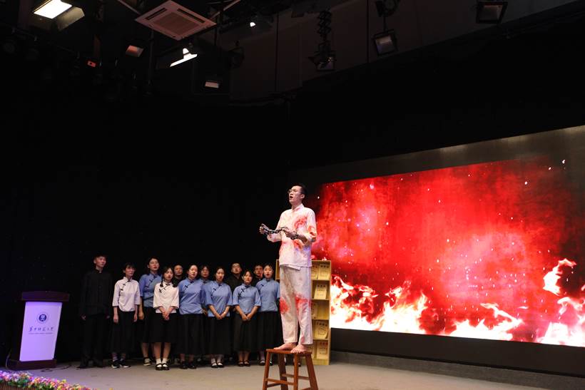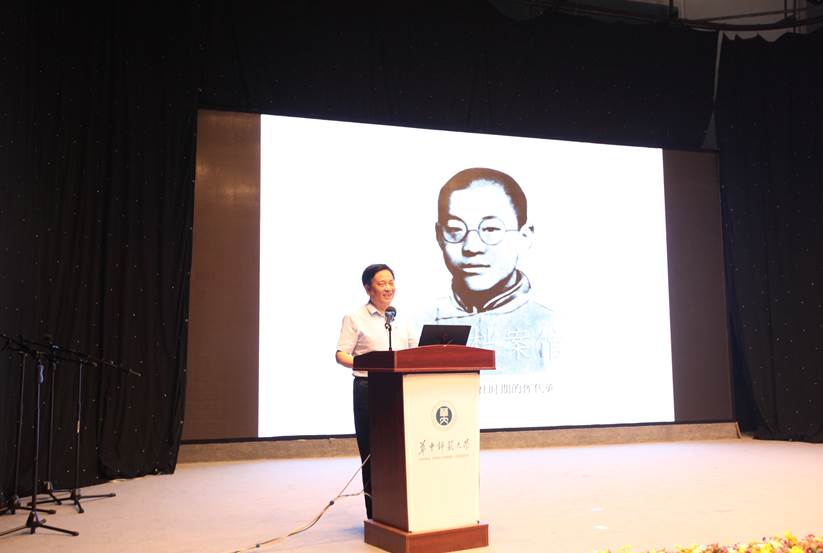 在“学校史”篇章,观看了华师版MV《少年》后,校大学生党史宣讲团现场演绎舞台剧《你好,恽代英》,原景再现杰出校友、中国共产党早期青年运动领导人之一恽代英革命生涯中的四个经典瞬间。恽代英与青年学生同战线、用思想革新求进步、以革命事业为己任的革命先驱形象,深深地打动了师生。校史专家董中锋教授深情讲述“百年华师 流韵千秋”微党课,娓娓道来华师校史中的红色基因、红色血脉、红色人物、红色故事。董中锋说:“从恽代英创办利群书社,传播马克思主义,到陈独秀在华师的前身文华大学宣传真理,发展中国共产党第一个工人党员,再到党的高级干部武承先将复员费拿出来在桂子山上植树造林、造福后人,共产党员鲜活的故事在华师代代相传。从教育家陈时拿出全部家产兴办中华大学,为国家培养大批杰出人才,到老一辈无产阶级革命家刘伯承、邓小平、陈毅创办中原大学,为党的事业培育无数英才,华师的历史无不叙说着教育的初心使命。华师118年的时光,孕育了学校独特的气质和神韵,产生了‘忠诚博雅、朴实刚毅’的‘华师精神’。华师精神有着红色基因,将不断发扬光大。”