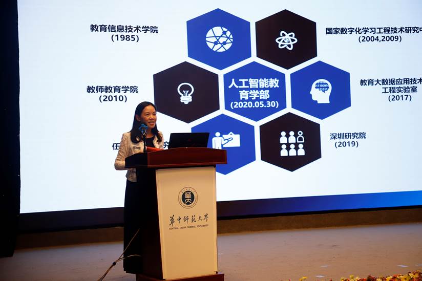 在“学部史”篇章,师生首先观看了视频《奋进中的人工智能教育学部》,学习了学部优秀党员教师代表刘三女牙、杨九民、吴砥以及党员校友周欣科研攻关、教书育人、社会服务等领域的感人事迹,为学部的快速发展而自豪,为身边党员的先进事迹而感动。学部党委书记罗丽华为师生讲授了主题为“学部‘第一’故事”的微党课,讲述了学部几代人参与和见证全国第一个人工智能教育学部的成立,第一台油膜光阀大屏幕电视的诞生,我国第一个教育信息化领域的国家工程技术研究中心的创办与发展,第一个教育信息化战略研究基地的建立,第一个教育信息化十年规划的诞生,第一个教育信息化方向国家级教学成果特等奖的诞生,第一个教育大数据应用技术国家工程实验室的诞生,第一个国家教师发展协同创新实验基地(全国中小学数字教师研训基地)的创建,国家自科基金F0701方向连续三年全国第一,第一个信息化与基础教育均衡发展(全国唯一的教育信息化类)协同创新中心的创建与发展的故事。罗丽华指出,学部人所创造的多个“第一”,根本在于坚持党的领导,得益于学部师生目标远大、敢闯新路、艰苦奋斗、团结协作,也离不开老一辈党员的艰辛付出和全体学部人的接续奋斗。展望未来,学部不忘初心、牢记使命,坚定走好教育信息化道路,全力在“人工智能+教育”领域攀高峰、创辉煌。