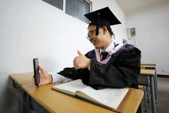 正如赵晓平作为本科毕业生代表在外国语学院毕业典礼上的发言中所讲:师者是他的理想所向,初心所在,也是他的价值所归。四年间赵晓平圆梦华师,毕业后他毫不犹豫的选择回到家乡成为一名人民教师,选择继续在辽阔的西北大地播撒梦想的种子。(图片来源:《中国教育报》 单艺伟)