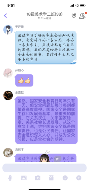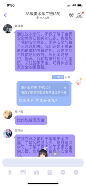 (各年级预备党员与入党积极分子带领同学们在班群中展开热烈讨论)