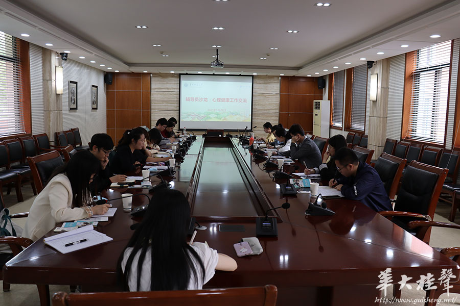华大桂声讯 5月20日下午,以心理健康工作交流为主要内容的辅导员沙龙在科学会堂301室举行。本场沙龙特别邀请到教育学院老师覃娟、外国语学院辅导员王莉进行相关经验分享,心理中心老师陈真珍、喻赛参加交流。本次辅导员沙龙由吴艳老师主持。